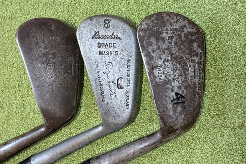・スペードマッシー 開いた扇を半割にしたような形状のディープフェースで薄いヘッド、ロフトは 40~43°位。番手が降られたヒッコリーでは#6 に該当。 (筆者の父のセット内の同番手=スチュアート製=には♯7 と刻印されているのは、恐らく♯6 のマッシーが在…